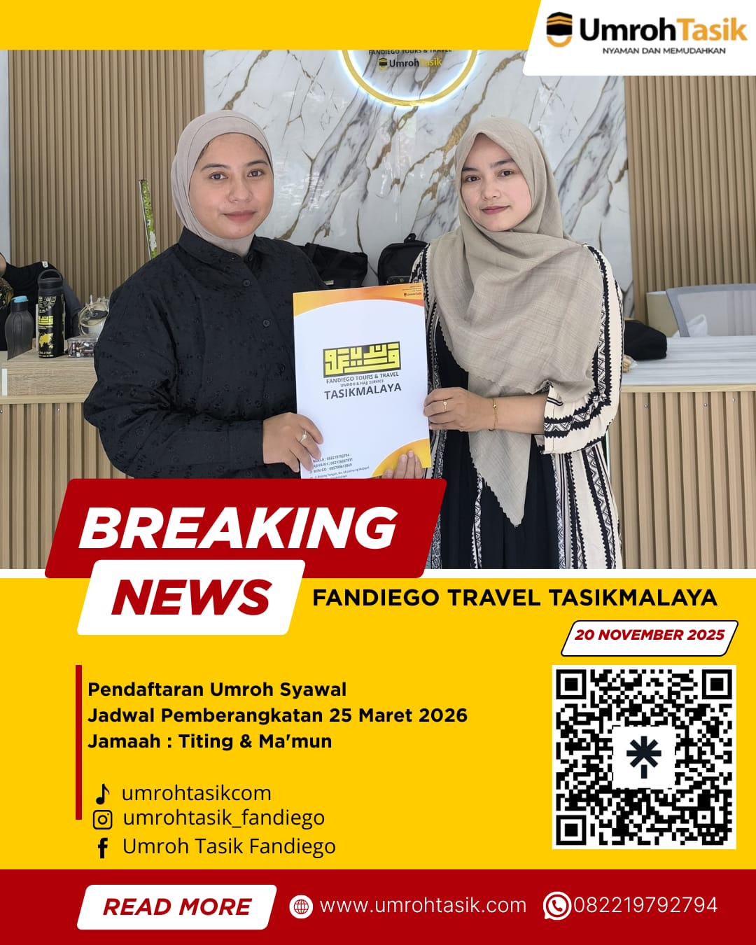 Melalui program Umroh Syawal, jamaah akan mendapatkan bimbingan lengkap mulai dari manasik, perlengkapan, hingga pendampingan penuh selama perjalanan. Kemudahan akses informasi juga tersedia melalui website resmi dan sosial media Umroh Tasik Fandiego.