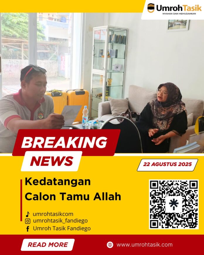 vAlhamdulillah, pada hari Jumat, 22 Agustus 2025, kantor Umroh Tasik Fandiego kembali mendapat kunjungan dari calon tamu Allah, yaitu Bapak Ridwan, yang melakukan konsultasi terkait persiapan ibadah umroh.
