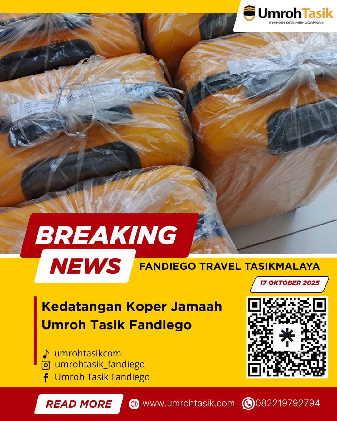 Alhamdulillah, koper jamaah Umroh Tasik Fandiego telah tiba pada tanggal 17 Oktober 2025. Kedatangan koper ini menjadi salah satu tanda semakin dekatnya waktu keberangkatan jamaah menuju Tanah Suci.