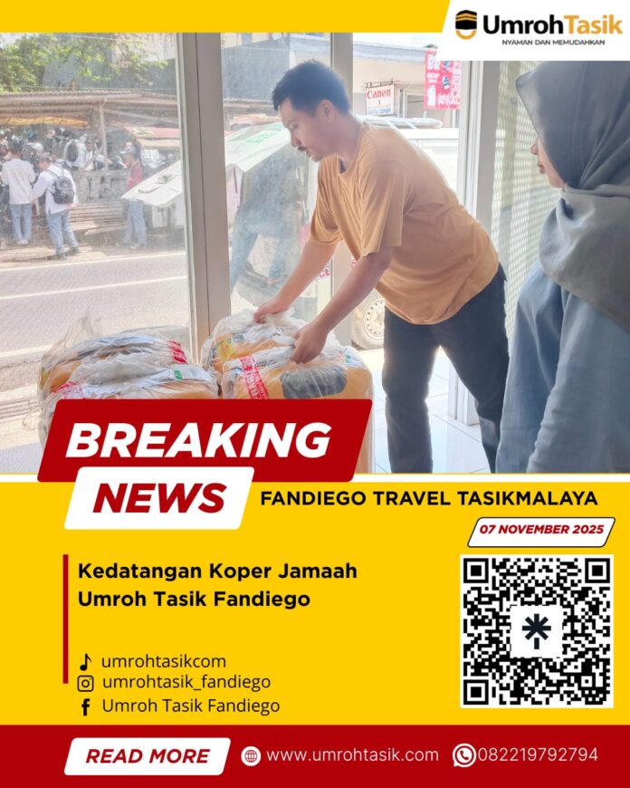 Bagi jamaah atau keluarga yang ingin memastikan status koper atau mengambilnya langsung di kantor, informasi lebih lanjut bisa diakses melalui website, media sosial Umroh Tasik Fandiego, atau menghubungi nomor layanan yang tersedia.