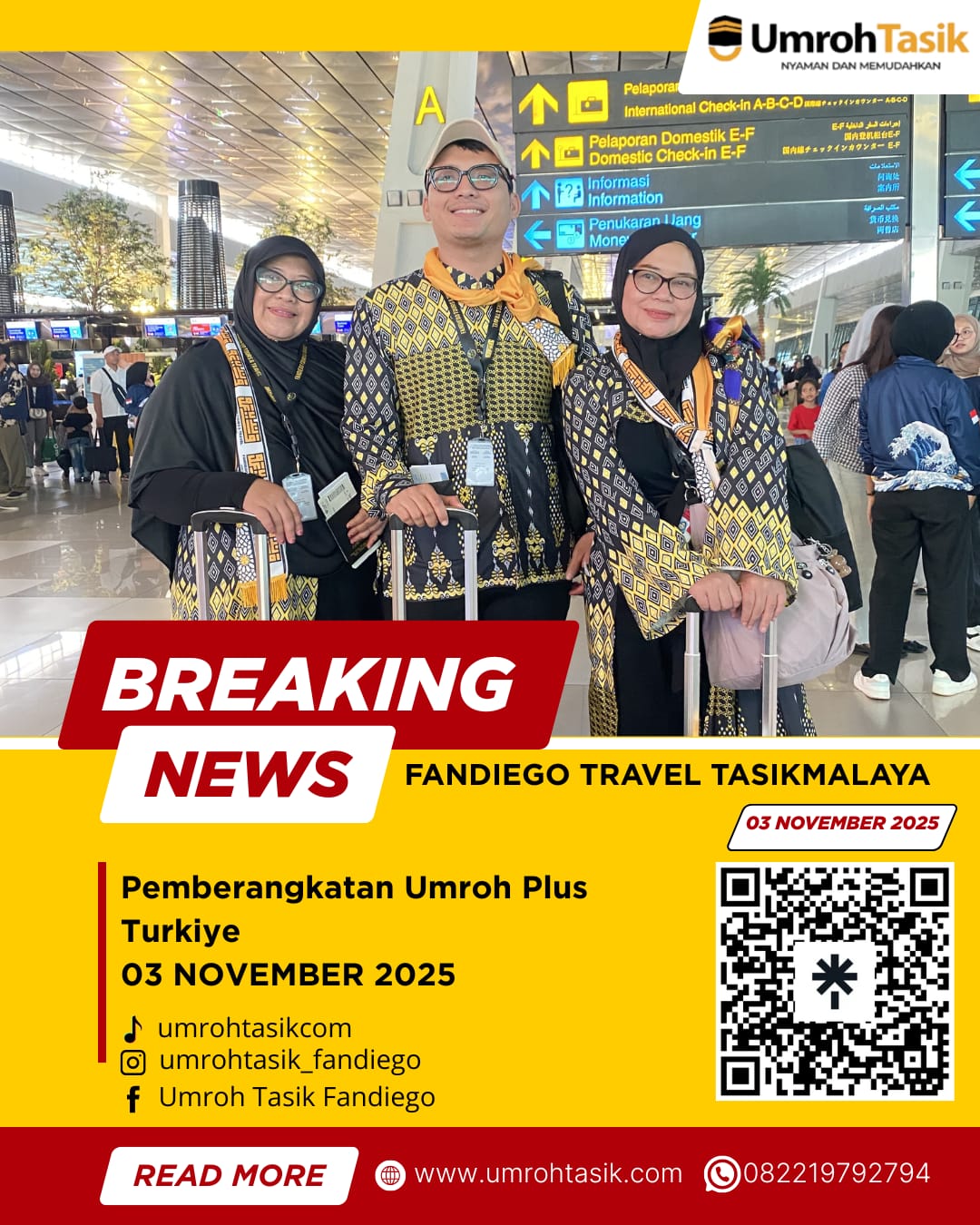 Pada 3 November 2025, suasana penuh haru dan kebahagiaan terasa di Bandara Soekarno-Hatta, Terminal 3, ketika rombongan jamaah umroh dari Tasikmalaya bersiap memulai perjalanan suci menuju Tanah Haram. Program yang dijalankan kali ini merupakan Umroh Plus Turkiye, memberikan pengalaman spiritual sekaligus wisata sejarah di negeri dua benua.
