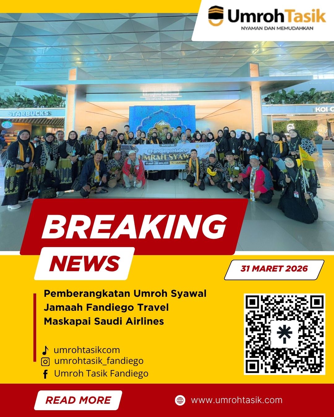 Tasikmalaya — Kabar membahagiakan datang dari dunia perjalanan ibadah umroh. Pada tanggal 31 Maret 2026, Fandiego Travel kembali memberangkatkan jamaah umroh dalam program Umroh Syawal dengan penuh khidmat dan semangat ibadah.