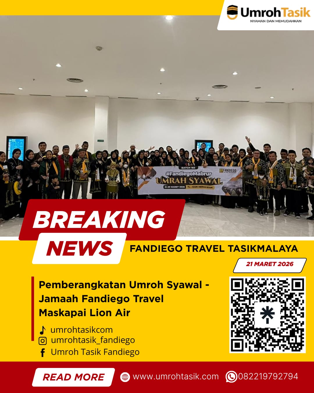 Fandiego Travel Tasikmalaya terus berkomitmen memberikan pelayanan terbaik, profesional, serta mendampingi jamaah dengan sepenuh hati agar setiap perjalanan ibadah menjadi pengalaman yang berkesan dan bermakna.Semoga seluruh jamaah diberikan kesehatan, kelancaran dalam beribadah, serta kembali ke tanah air dengan membawa predikat umroh mabrur. Aamiin