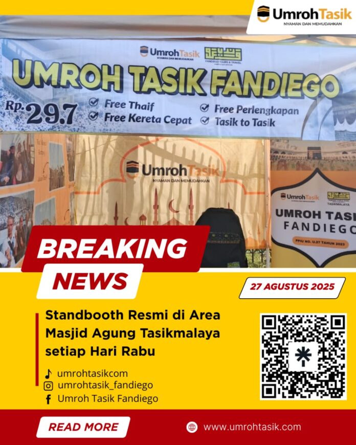 Umroh Tasik Fandiego terus berkomitmen memberikan pelayanan terbaik bagi para calon jamaah dengan menghadirkan standbooth resmi di area Masjid Agung Tasikmalaya setiap hari Rabu. Kehadiran standbooth ini menjadi sarana bagi masyarakat yang ingin berkonsultasi langsung mengenai paket umroh, biaya, fasilitas, serta jadwal keberangkatan.